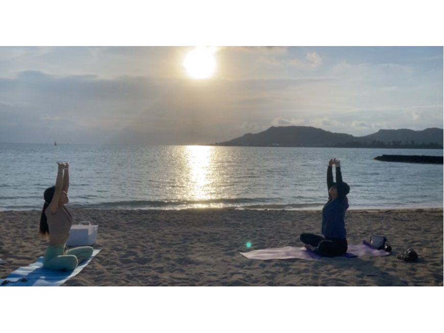 朝日と海を見ながらヨガをする贅沢時間♪
