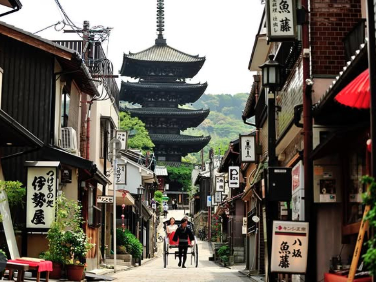 京都市東山の歴史ある街並みを、えびす屋の人力車で巡る定番コース。