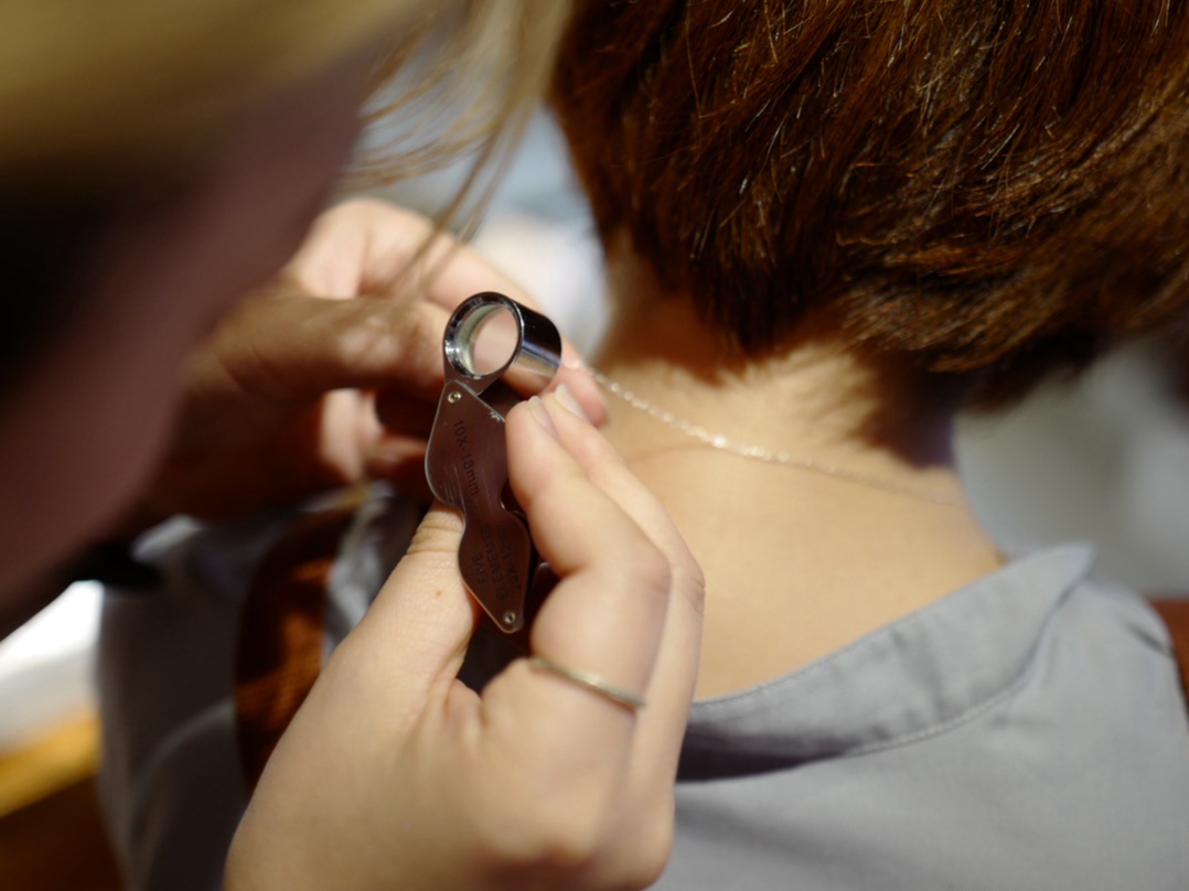 当店では、チェーンの長さを1cm単位で調整できるため、お客様にピッタリのサイズでジュエリーをお楽しみいただけます。