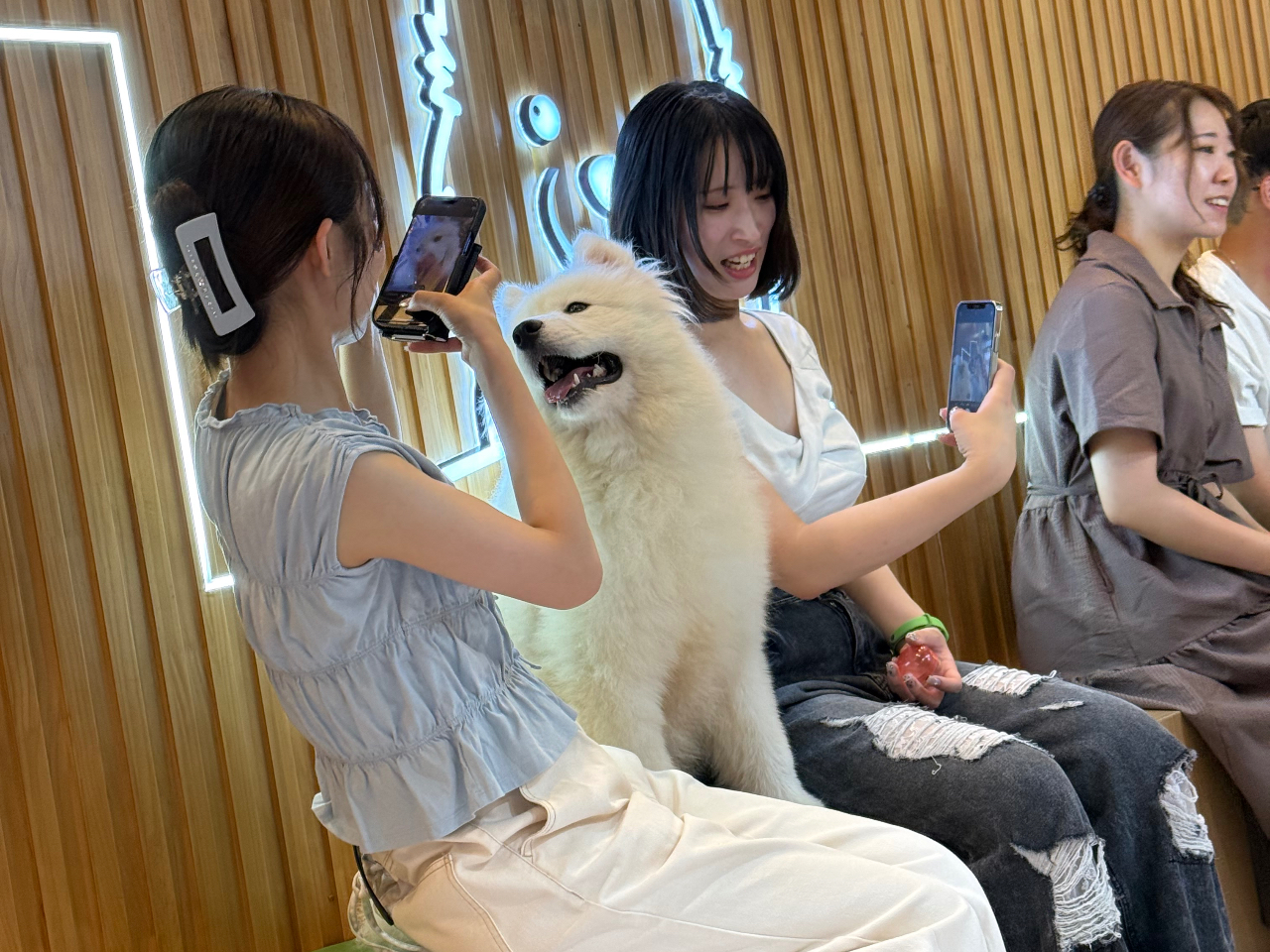 日常の喧騒を忘れ、愛らしいサモエドたちとのふれあいを通して心もほっとほどけるひとときをお楽しみください。
