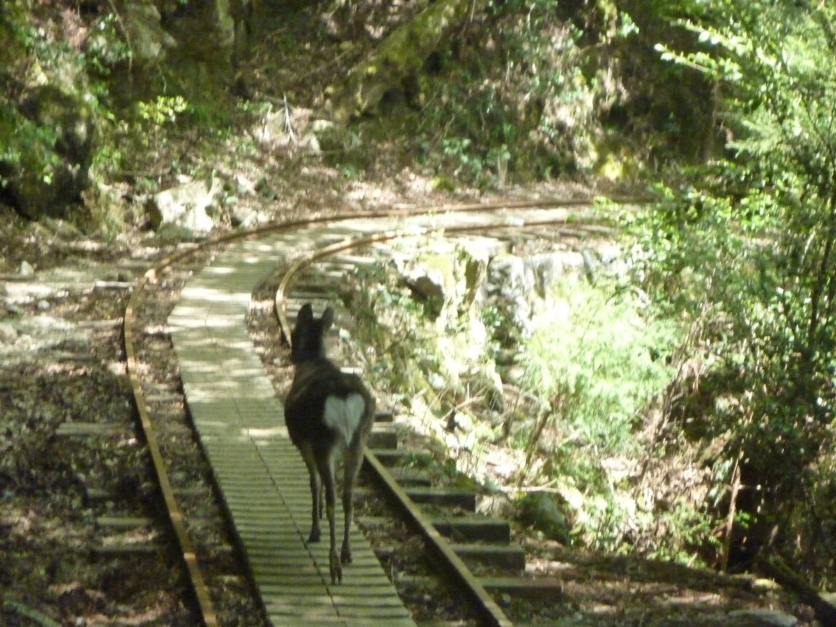 片道、トロッコ軌道を8.5km(約3時間)、山道を2.5km(約2時間)の11km(約5時間)往復22kmを10時間かけて歩きます。