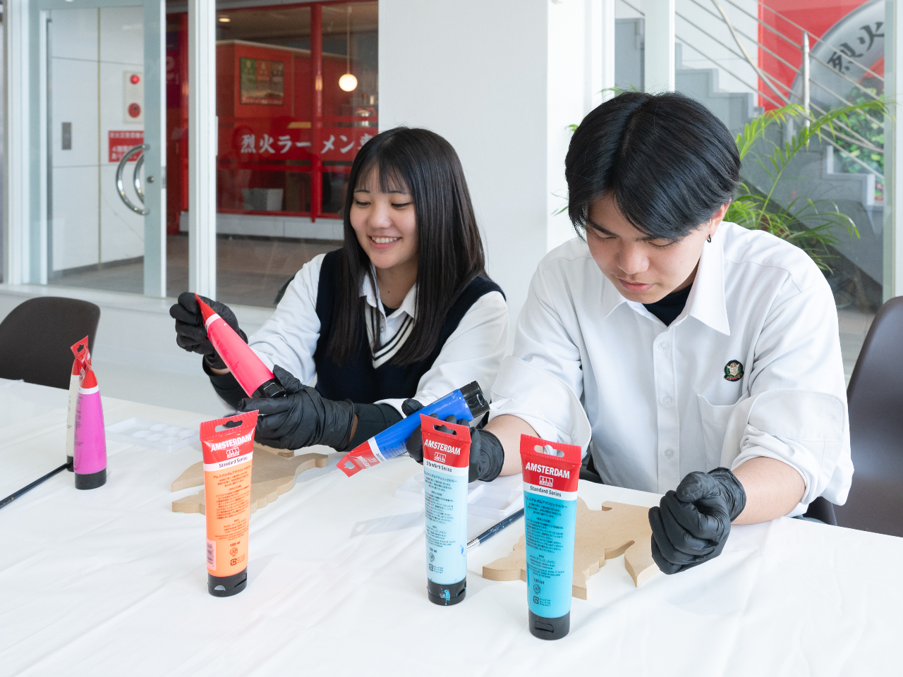 併設のバーで作品完成後に乾杯!