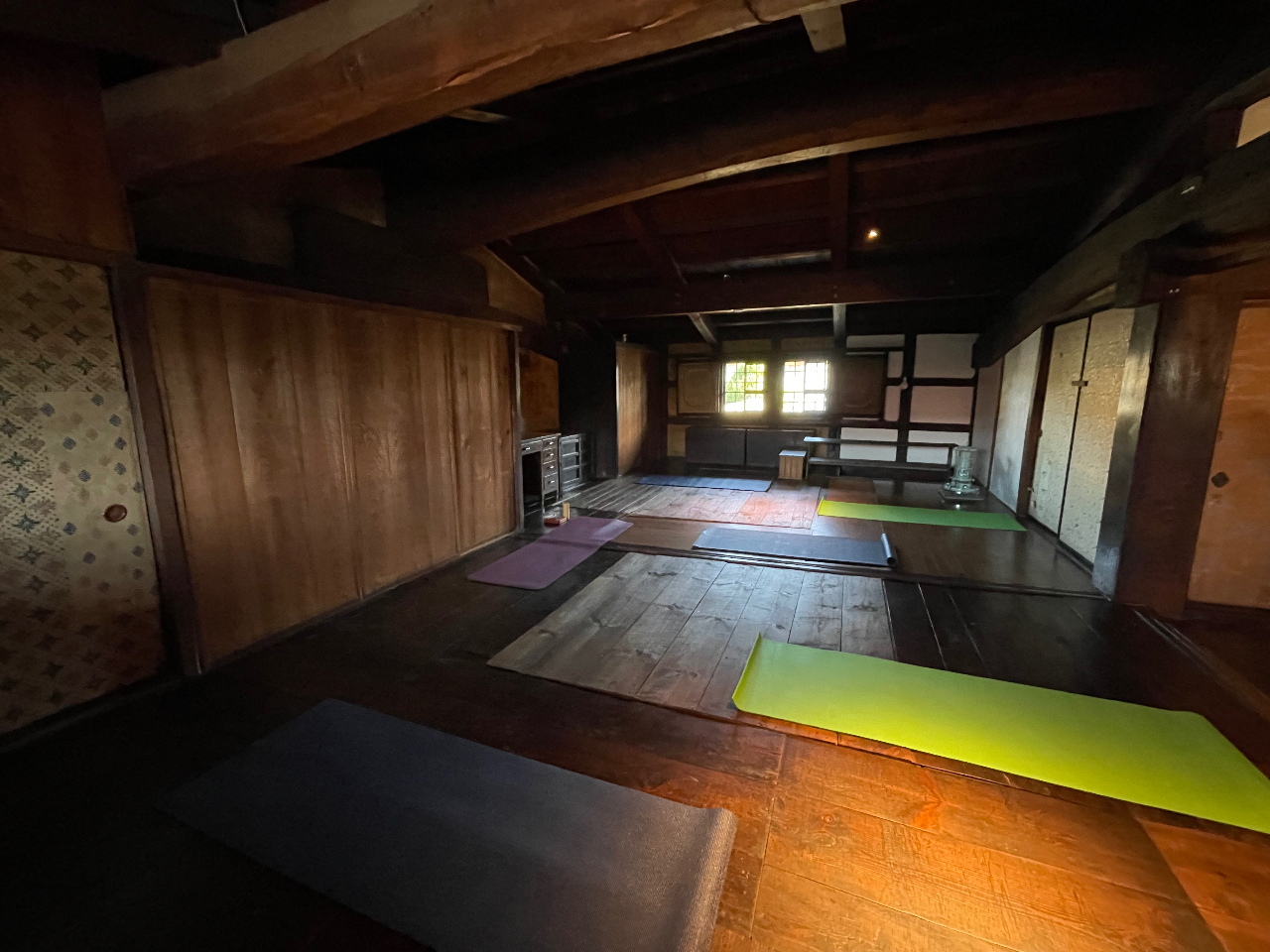 江戸時代からの梁や大黒柱が残る、築250年の朝陽堂で行うヨガクラスです。