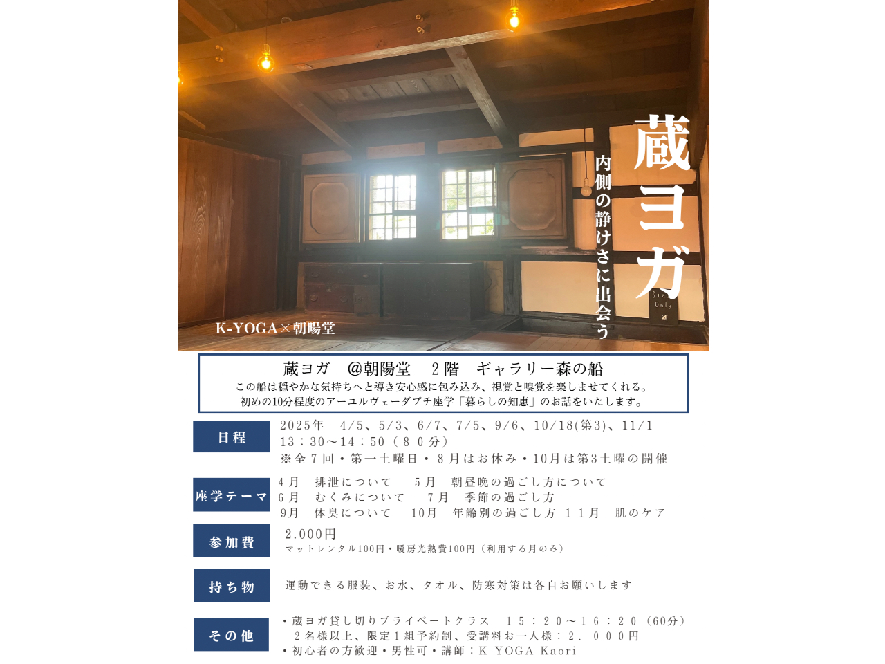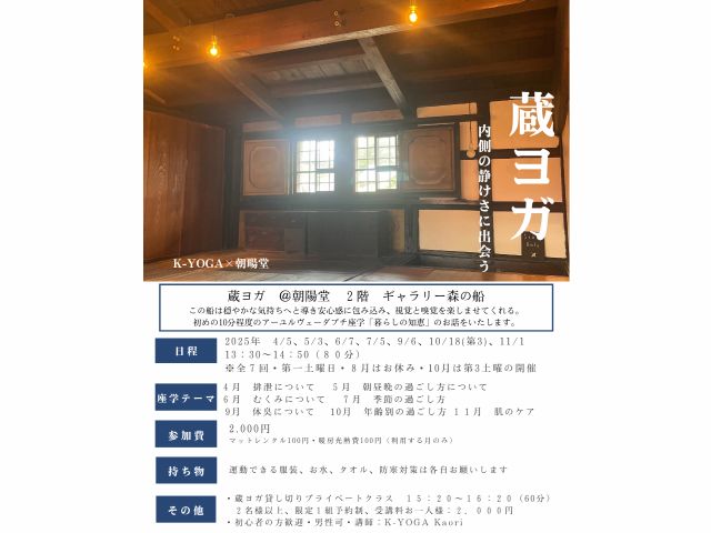 「蔵ヨガ」@朝陽堂 月1開催♪「内側の静けさに出会う」お一人でのご参加大歓迎!初心者の方でも安心してご参加ください♪のプラン詳細