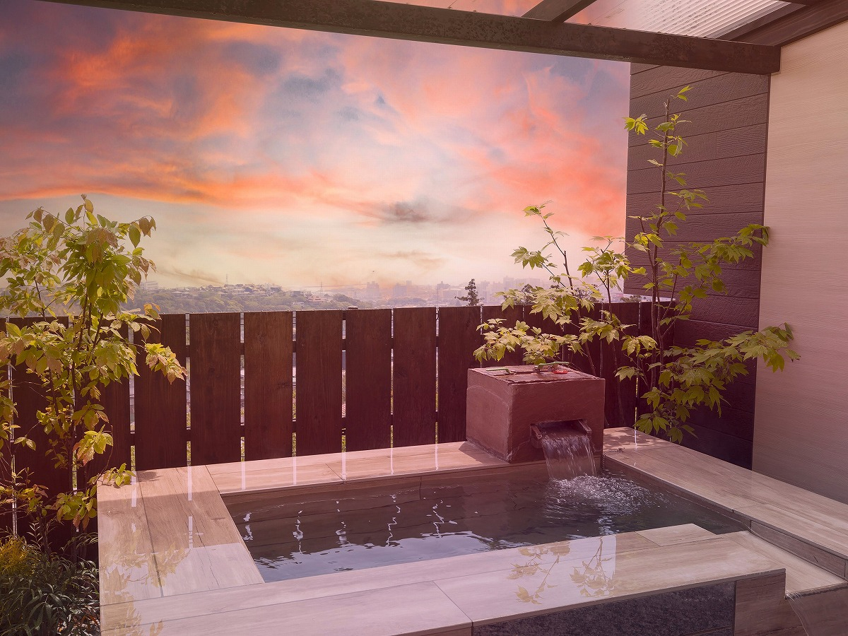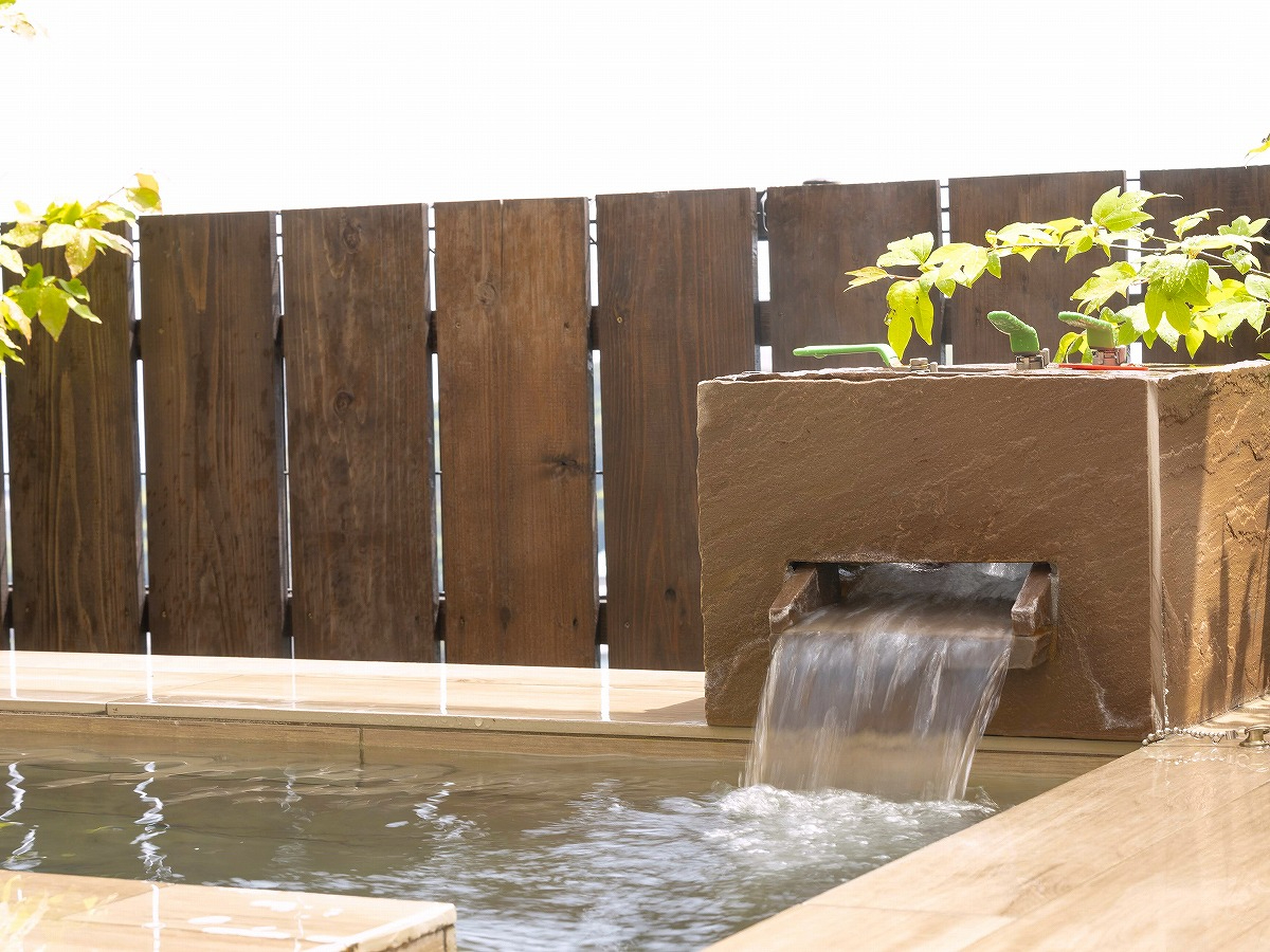 ・天然温泉をたっぷりと。開放感溢れる家族風呂。