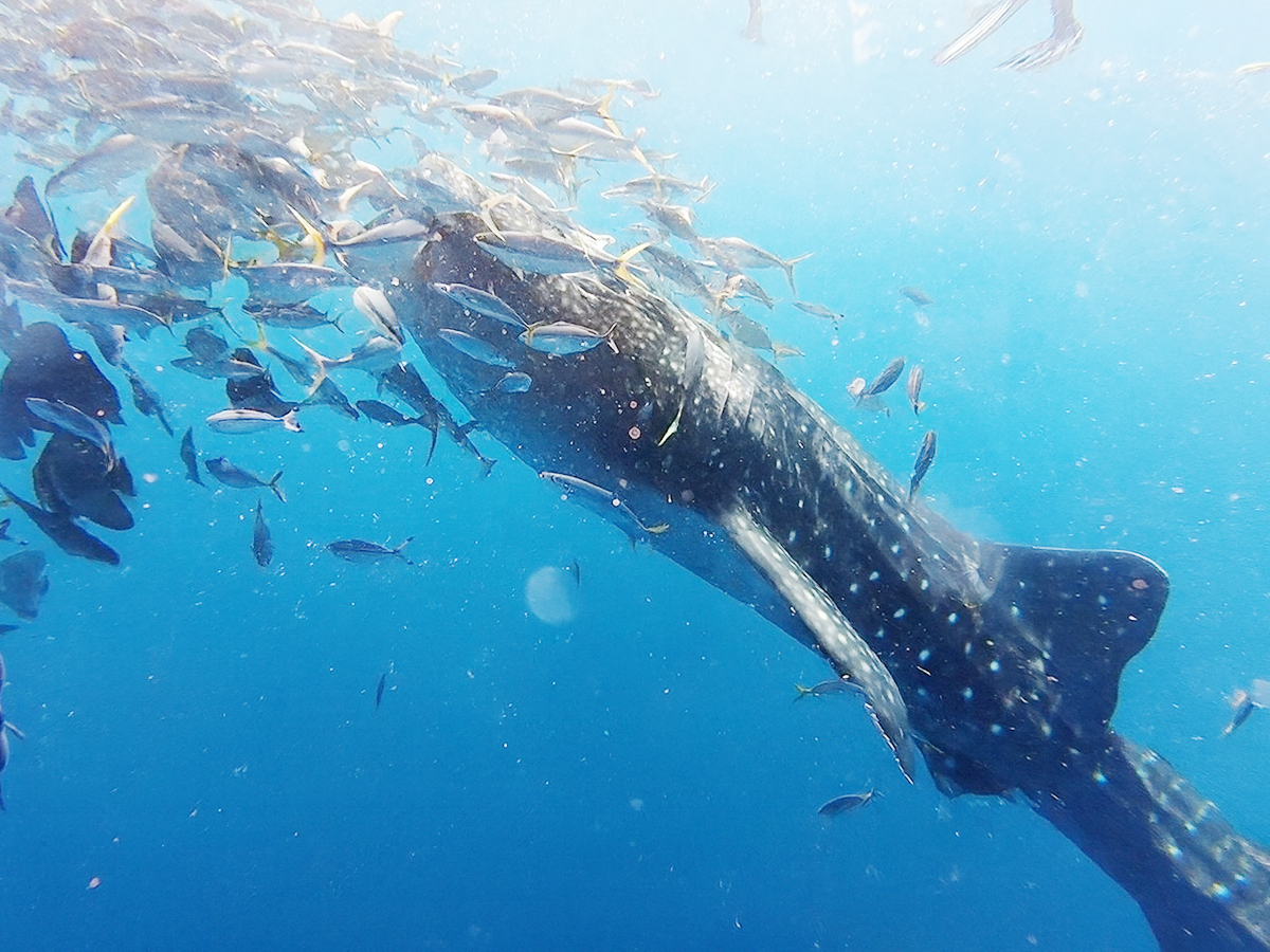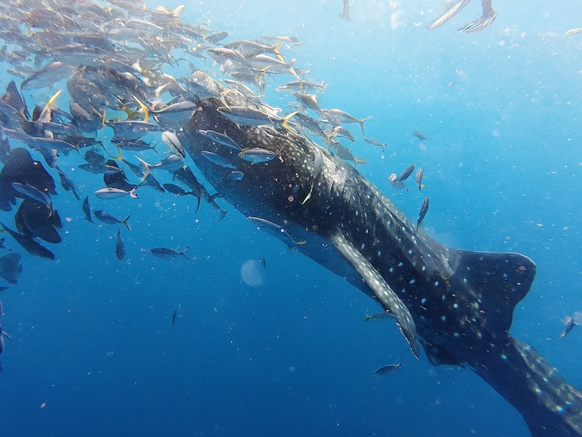 スタッフの方がとても気さくで、乗船前から楽しいひと時を過ごさせていただきました。いざ海の中に入ると、ジンベイザメに手が届きそうなくらいの距離感でじっくりと見ることができました!事前に魚の説明も頂いていたので、より楽しみながら魚に餌をあげることができました!じっくりと楽しむことができて本当に最高の思い出になりました。ありがとうございました!
