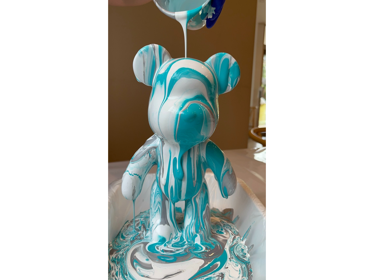 選んだフィギアに、絵の具をかけたり、筆で塗ったり、自由にアートを施していきます。最後は、お好みでラメをかけて完成!