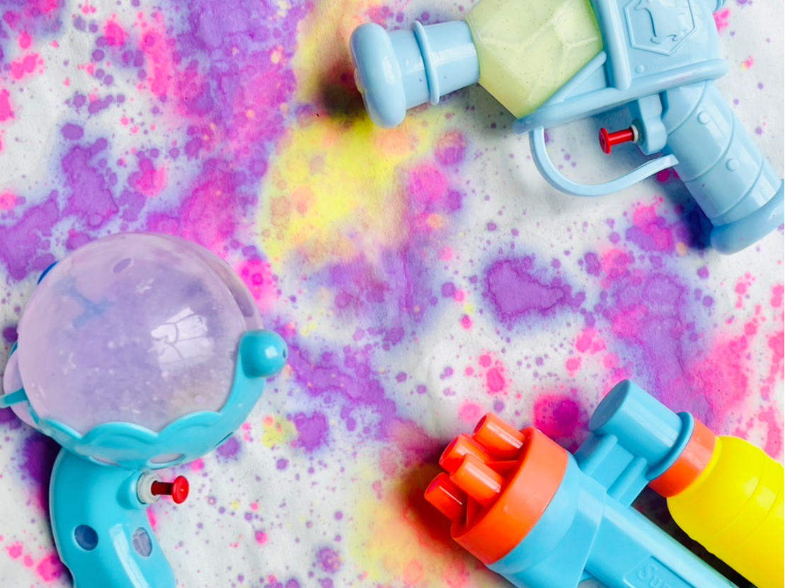 ・カラフル水鉄砲でTシャツアート…(2,000円)【事前予約必須】(10:00〜、11:30〜開催)