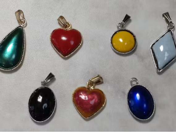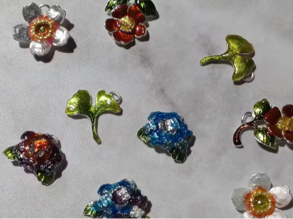 『七宝焼き』のペンダントトップやピアス、キーホルダーが作れます。アクセサリー作り