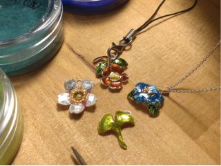 『七宝焼き』のペンダントトップやピアス、キーホルダーが作れます。アクセサリー作り