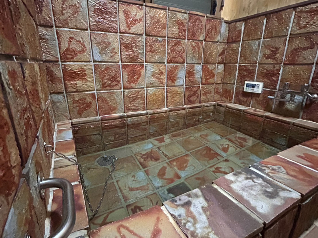 【体験後に温浴も楽しめる♪】ビーチからすぐの場所で民宿も経営しており、壁や浴槽を備前焼でこしらえたこだわりのお風呂で、肌寒い日のSUP体験後もぽっかぽっか♪
