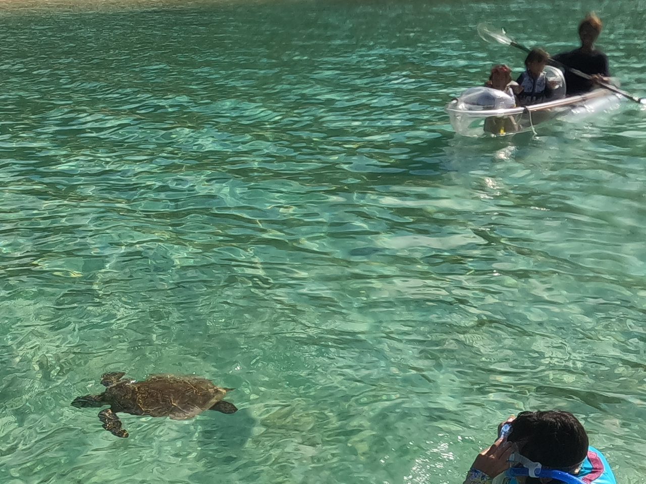 ウミガメ遭遇率99%!宮古ブルーの海の上を冒険するクリアカヤックツアー☆☆ドローン撮影サービス☆☆【宮古島/新城海岸】