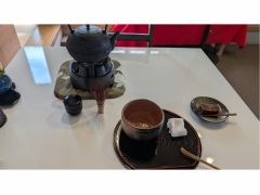 カフェで抹茶、珈琲、紅茶、シフォンケーキ、プリンなど |