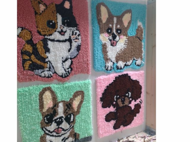 結婚式や新築のお祝いに心を込めて2人で制作したラグマットをプレゼントになど。制作体験(2人で1つの作品/60p×60p)♪オリジナルデザインプラン♪お家の玄関マットやワンちゃんネコちゃんのラグを一緒に