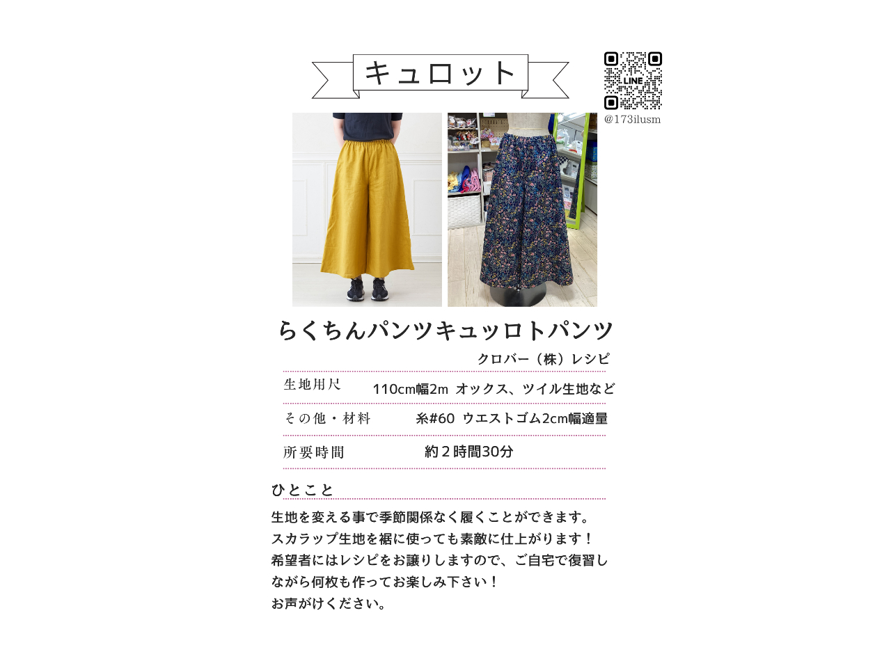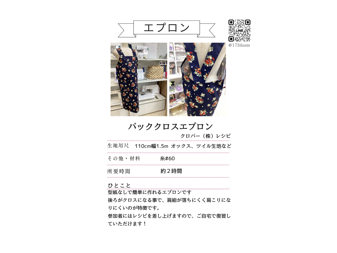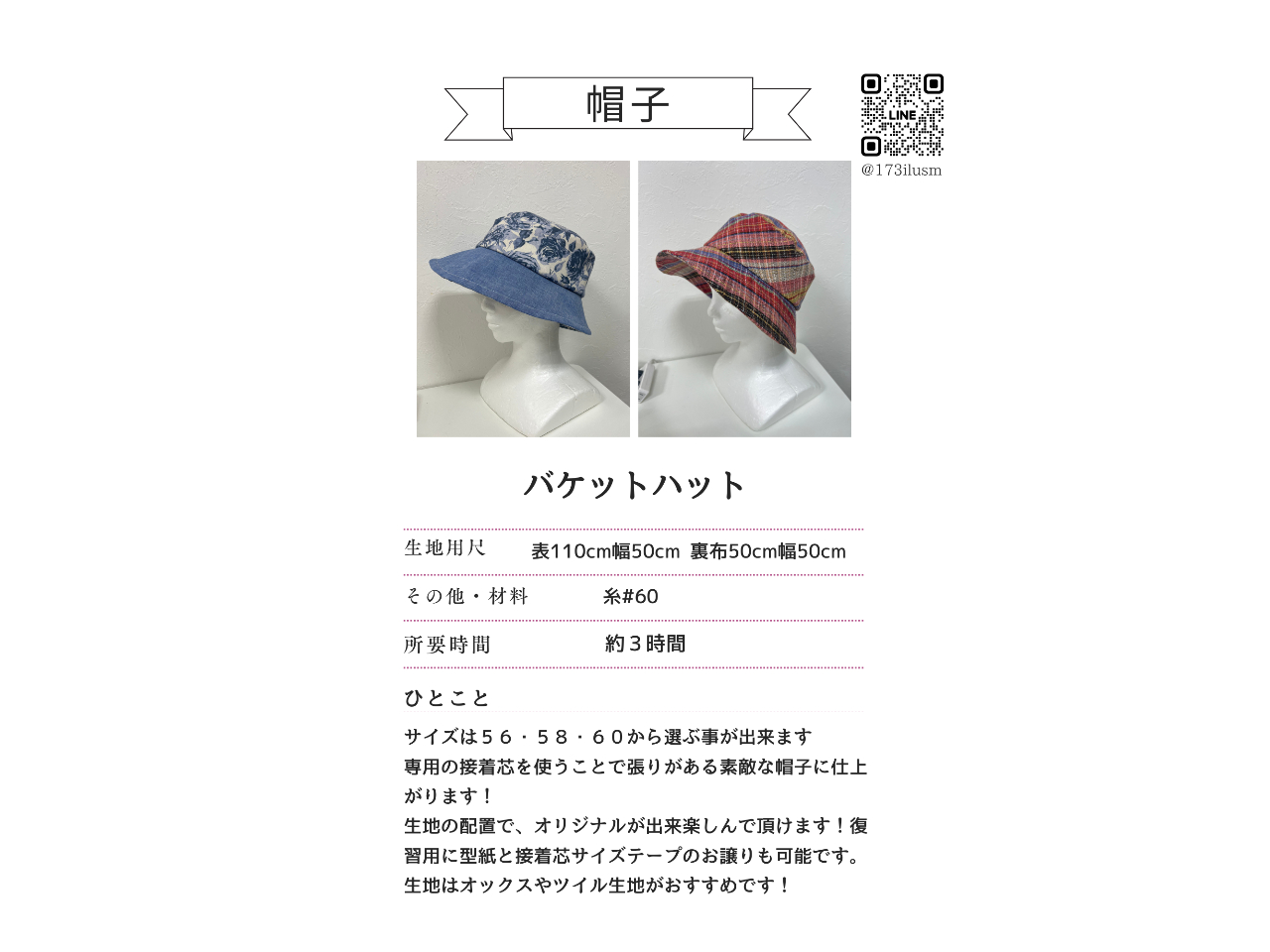 簡単で素敵な型紙をご用意しております。好きな生地をお持ちください。