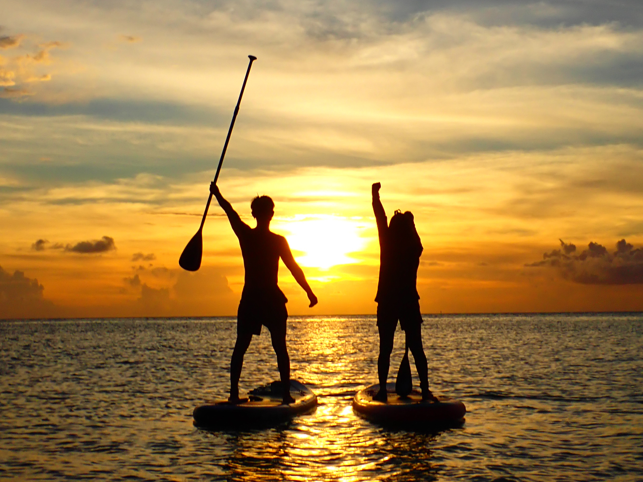 【宮古島】黄金色の海で楽しむサンセットSUP体験★初心者歓迎&写真データ付き♪女子旅・友達旅に人気!