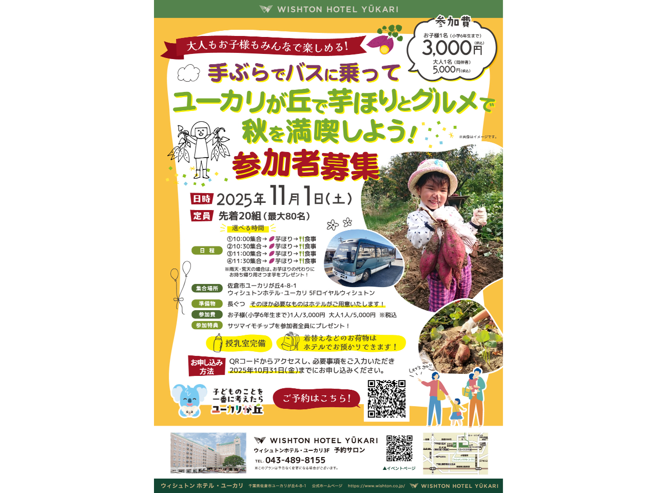 【11/1(土)】手ぶらでバスに乗って ユーカリが丘で芋ほりとグルメで秋を満喫しよう! 大人もお子様もみんなで楽しめる!