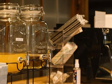 カフェではサイフォンコーヒーやフリードリンクもあり、くつろぎ時間にぴったり♪