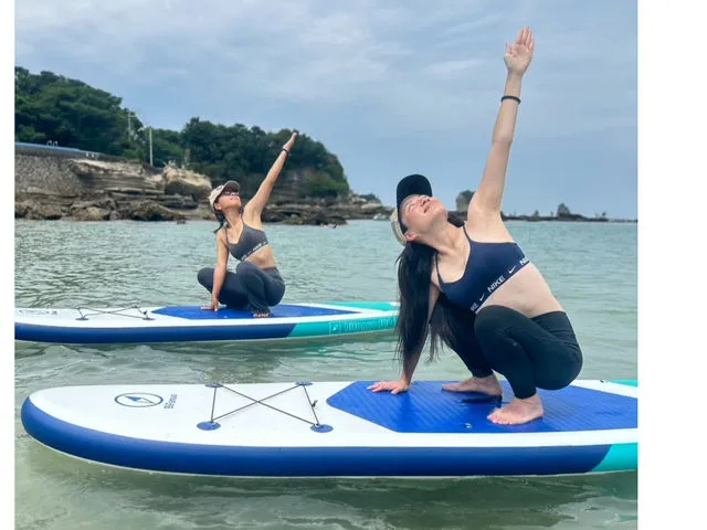 南国リゾートのような白浜の海で、SUPとサップヨガを体験!プロダンサーのガイドで、笑顔と映える瞬間があふれる特別な時間を過ごせます♪