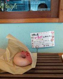 写真は人気のイチゴベーグル、水を使わず苺100%で作っているとのことで、とてもいい香りがします。