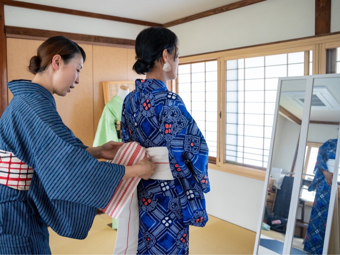 プロの手による着付けで、非日常へとタイムスリップ。和の装いで町に溶け込むひとときをお楽しみください。