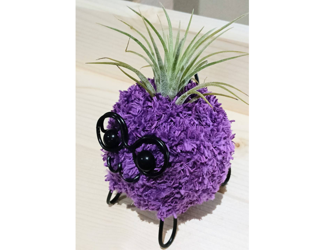 特殊な苔玉に好きな色の毛糸をぐるぐる巻いて、