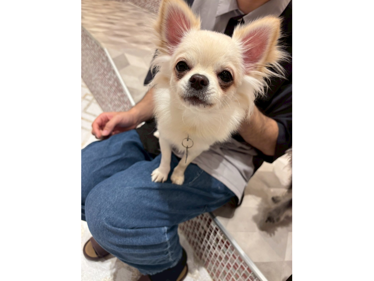 低い位置に座っていただくと、ワンちゃんがお膝にのってきます。