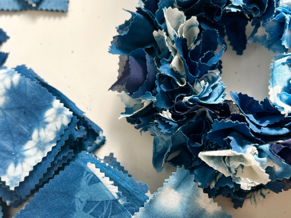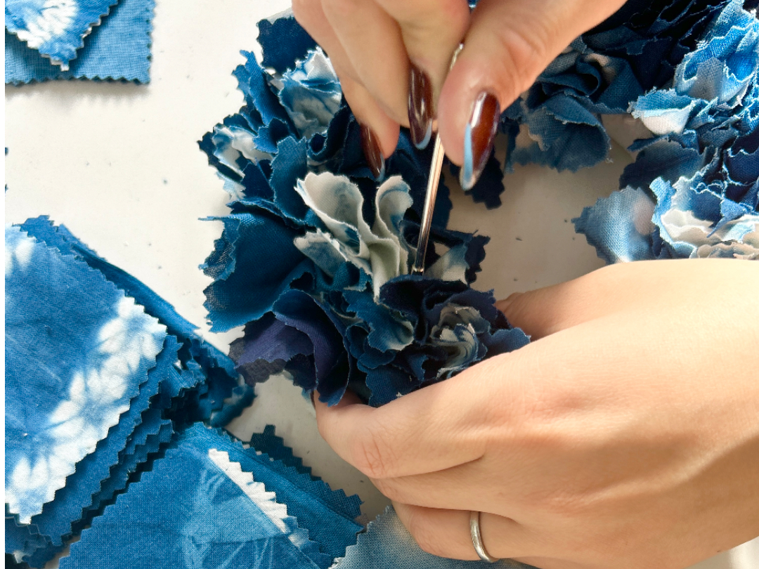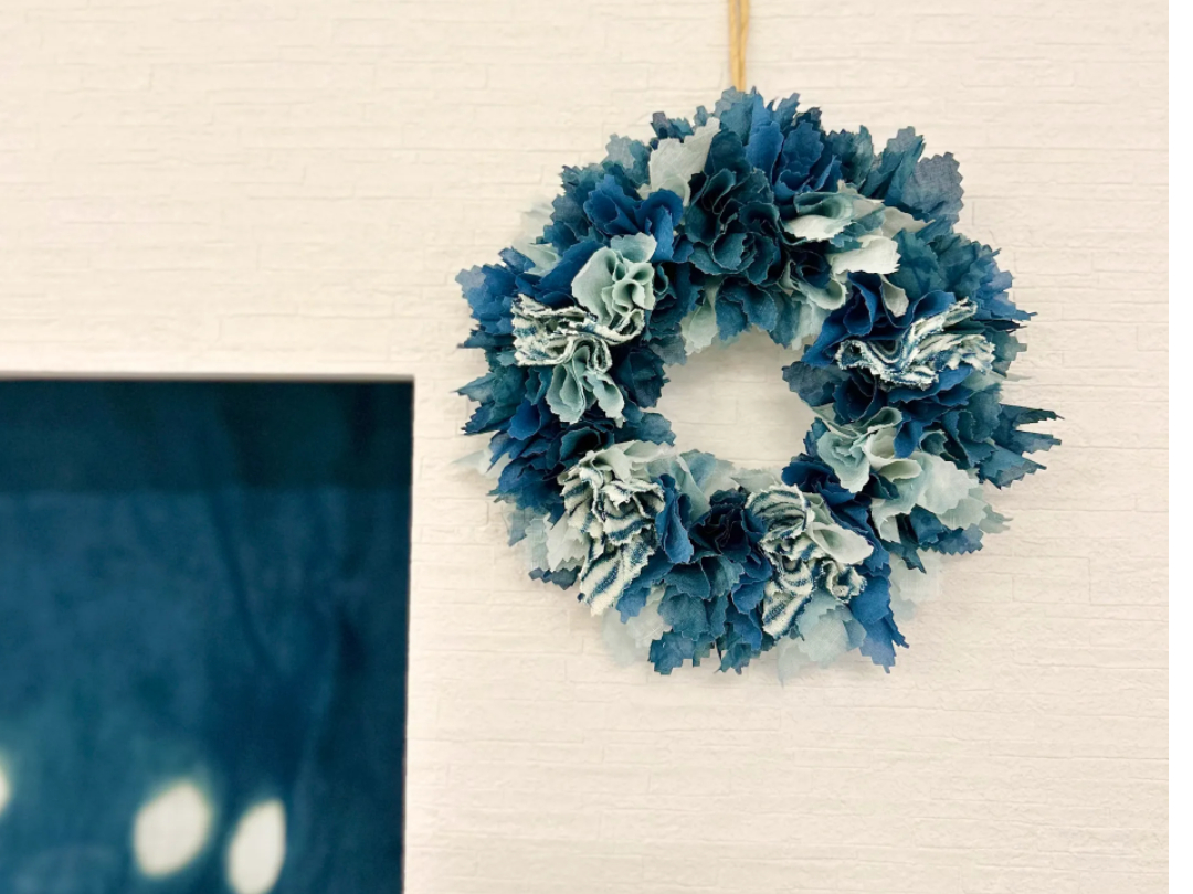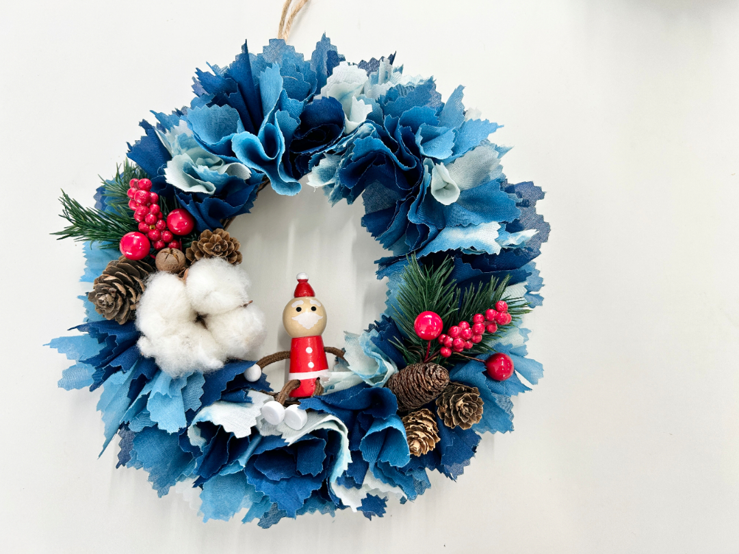 美しい藍染め生地を使ってクリスマスリースを制作!