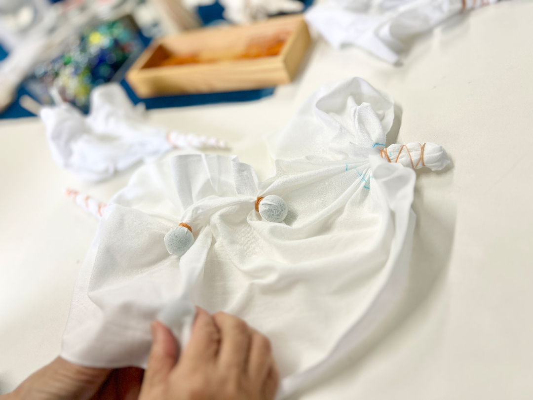 美しい藍染め生地を使ってクリスマスリースを制作!