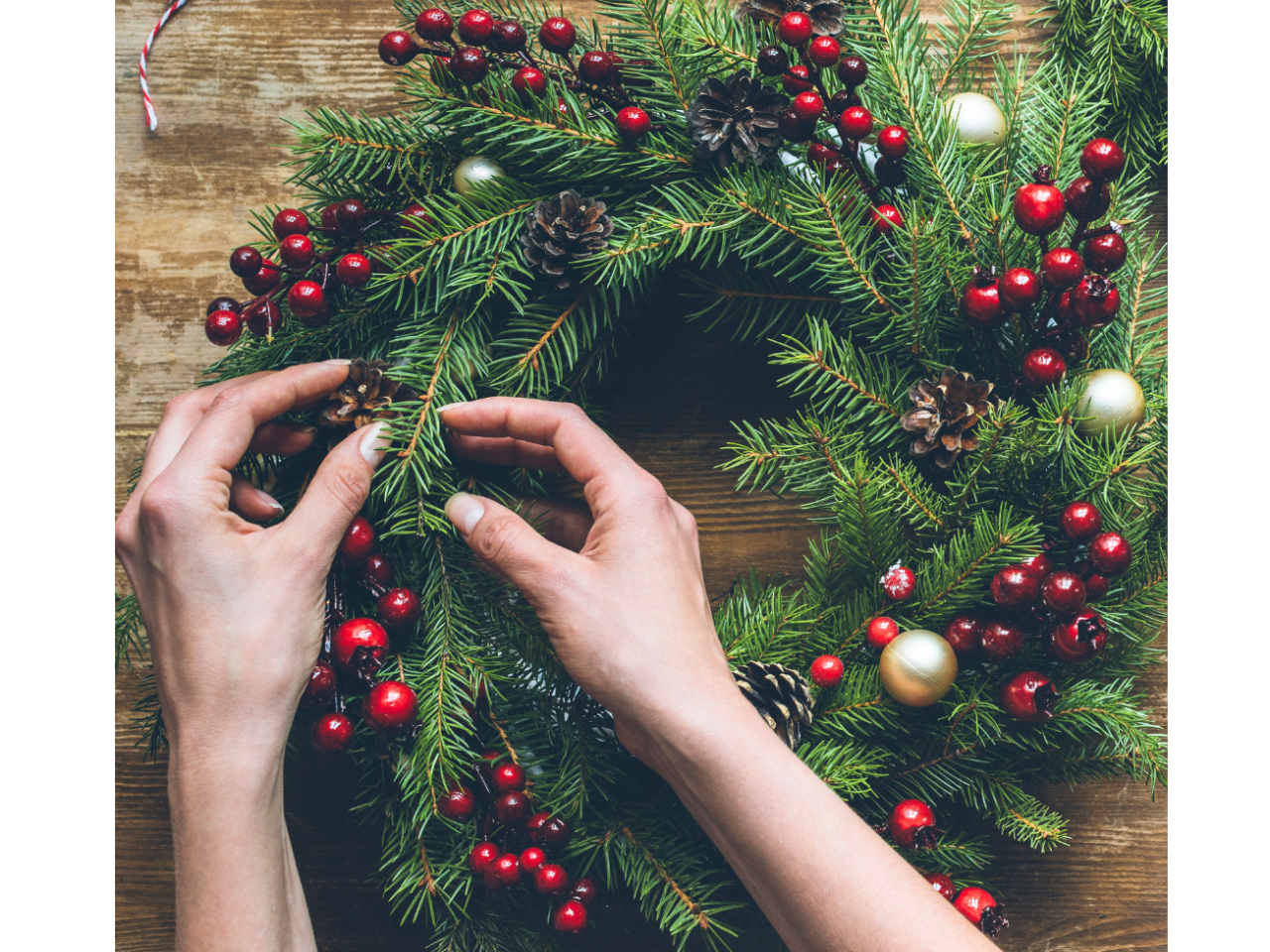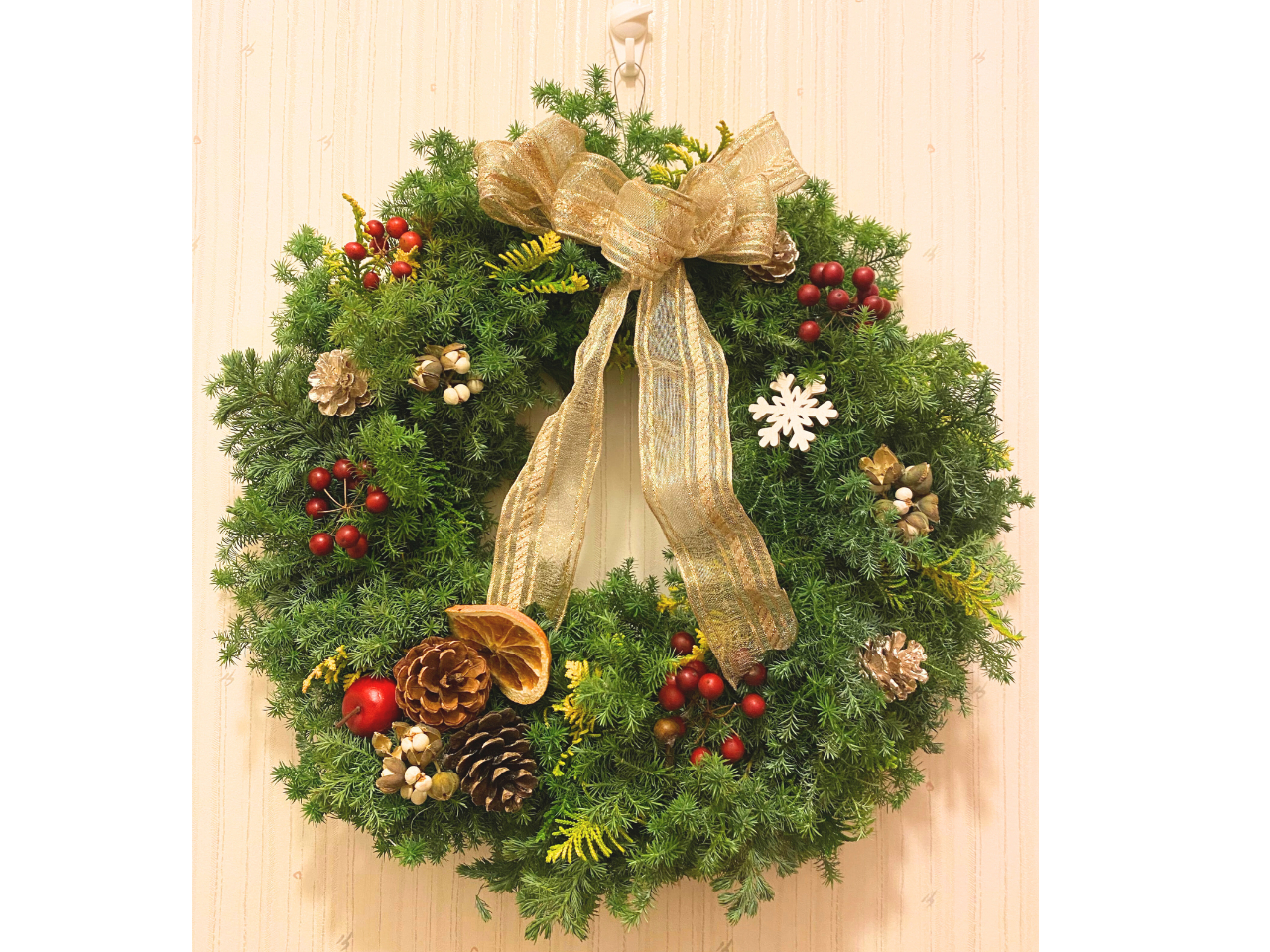 ご自分の好きな飾りをつけてオリジナルのクリスマスリースを作ります。