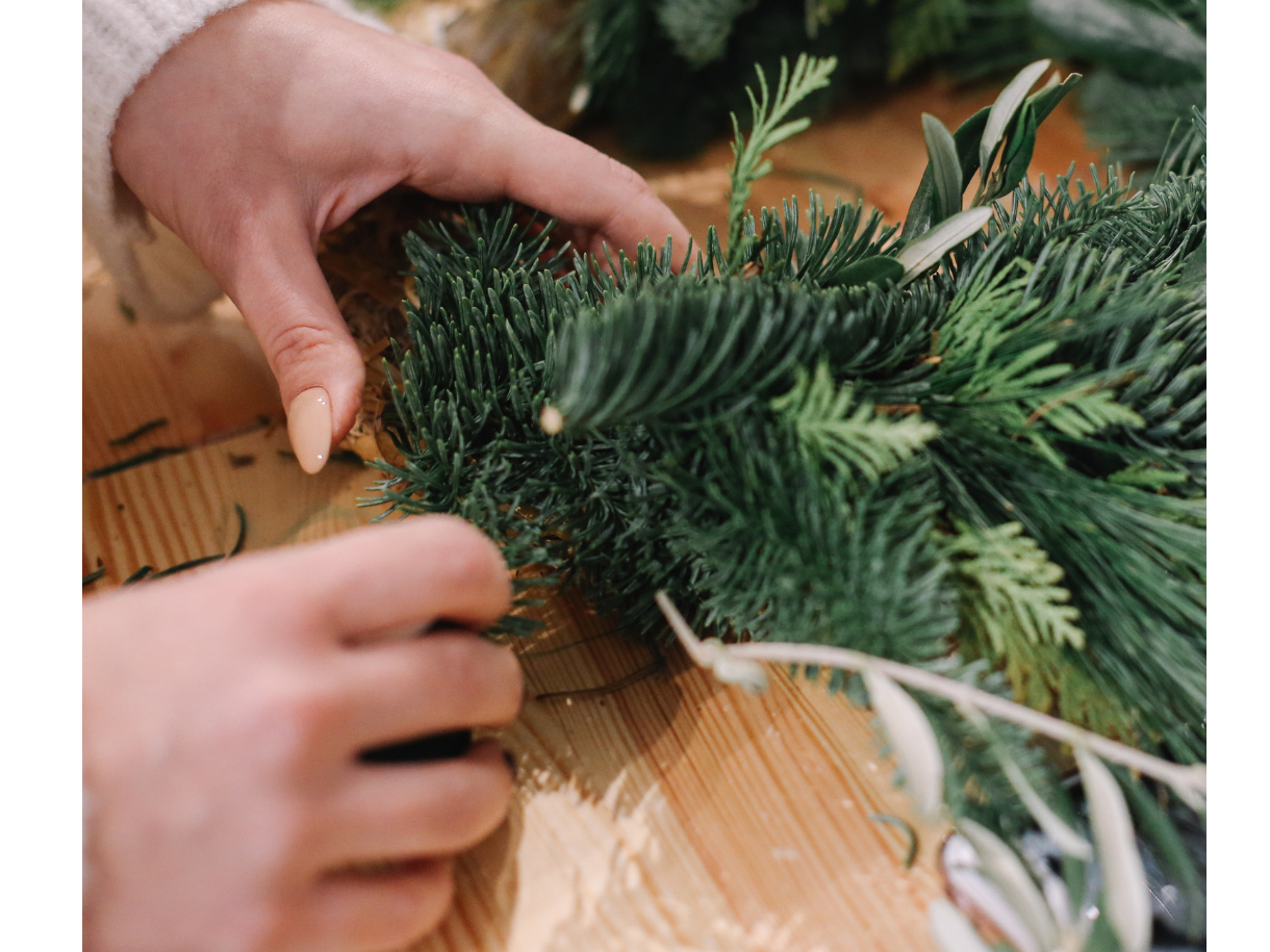 ヒムロスギなどの木々でクリスマスリースを作ります。