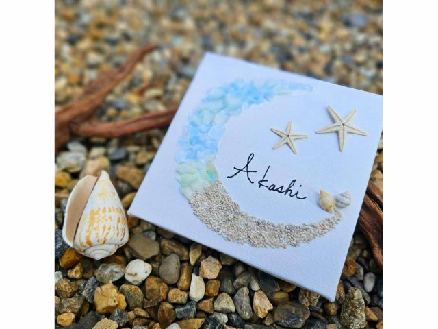 キャンバスに写した下絵に沿って、木工用ボンドでキラキラと輝く鯛の鱗や、色とりどりの砂、可愛らしい貝殻を貼り付けていきます。ピンセットを使い、一つひとつ丁寧に鱗を並べる作業は、思わず夢中になってしまう面白さ。光の角度で表情を変える鱗の美しさに、きっと驚くはずです。