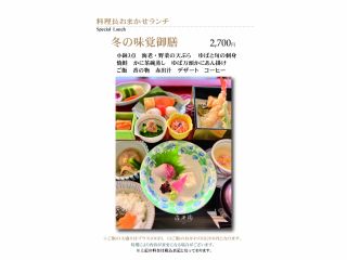 ★メニュー:小鉢・お造り・焼物・茶碗蒸し・煮物・天ぷら・ご飯・香の物・赤出汁・デザート・コーヒー