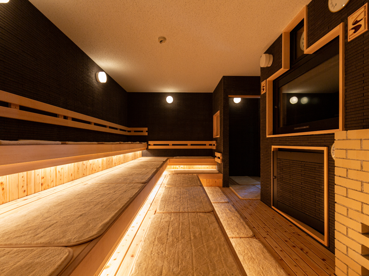 北欧風ラウンジ、天然温泉にサウナで大人のご褒美タイムを