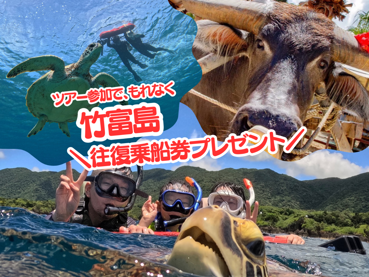 大人気“幻の島”上陸と、高確率で遭遇中のウミガメシュノーケルに加え、竹富島往復チケットまでセットになった石垣島満喫コース!ツアーと離島観光を効率よく充実した1日を過ごしたい方におすすめです!