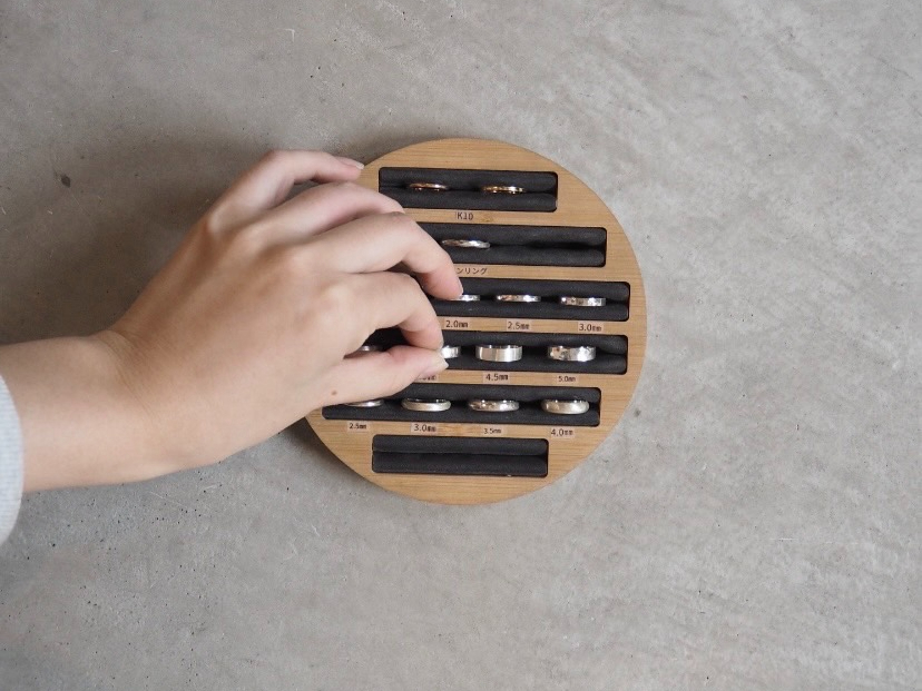 リングの形・幅、表面仕上げ、指の号数を決めて制作を始めます。