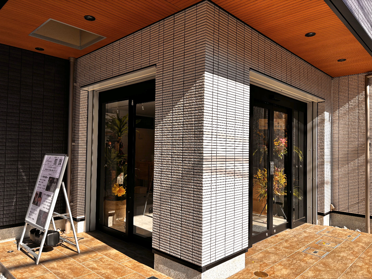 大宮門街裏の黒い建物1階。足元のタイルがベージュ、白黒の壁が目印です。
