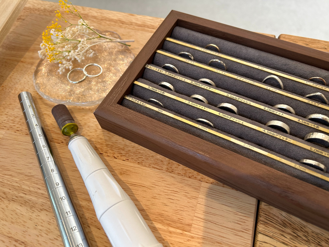 リングの形・幅、表面仕上げ、指の号数を決めて制作を始めます。