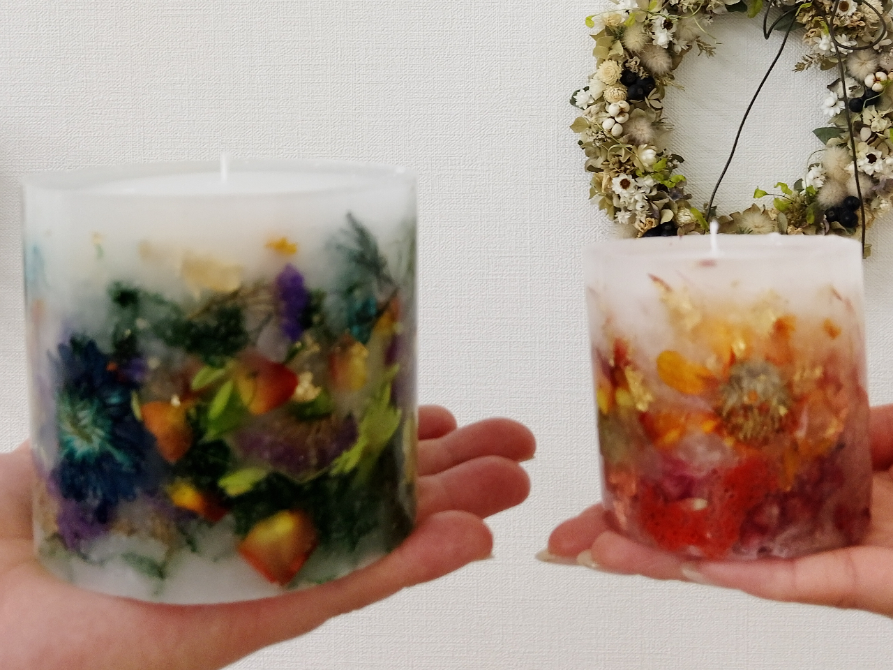 オリジナルキャンドルなので、配色や入れるドライフラワー、全て自分で決めることが出来ます!