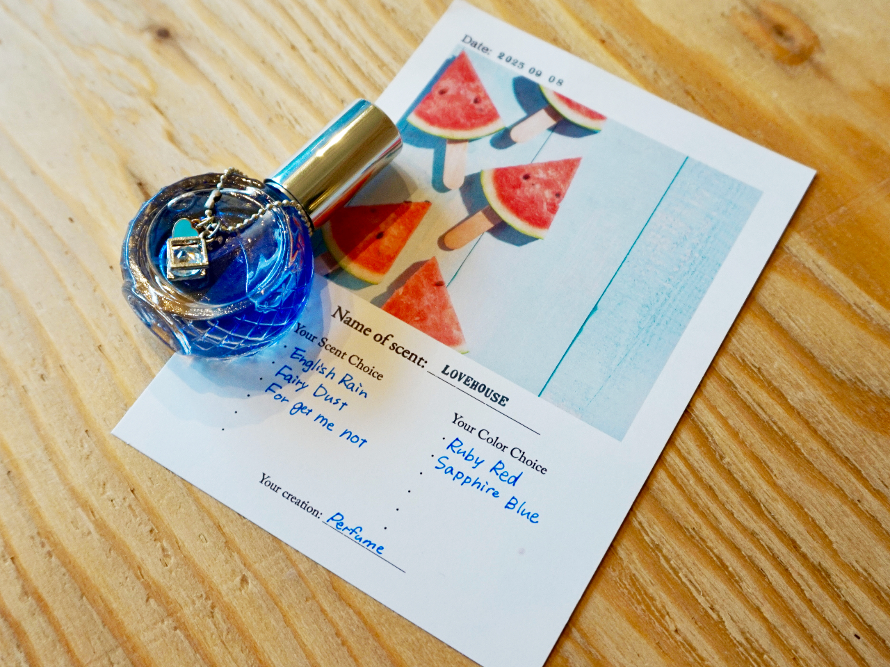 100種類以上の香りをブレンドして、色や瓶、チャームまで選べるオリジナル香水づくり!