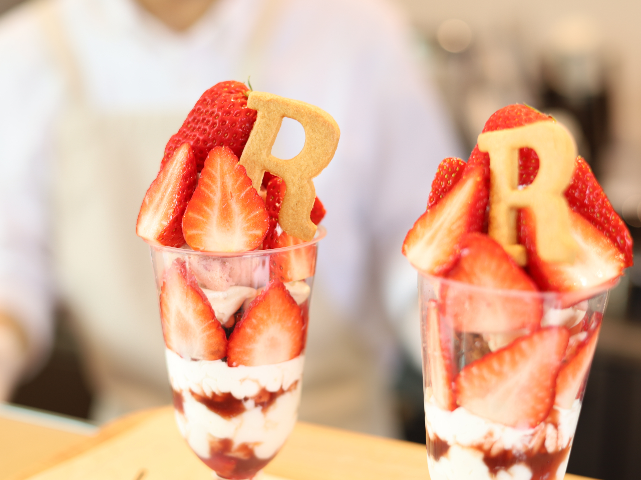 併設のカフェ&ショップでは、朝採れいちごの販売のほか、園内で採れたいちごを使ったスイーツやドリンクを提供しています。