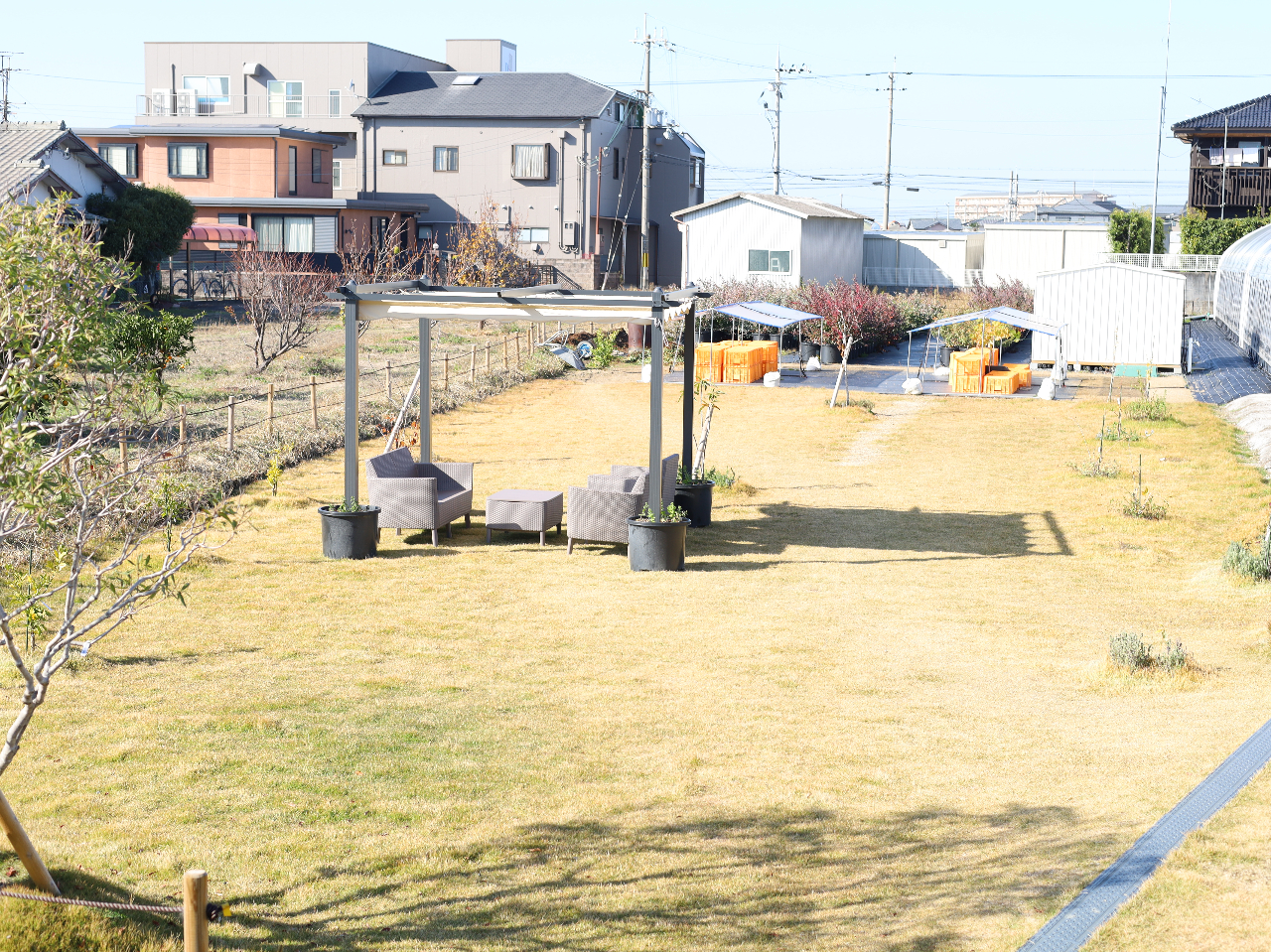お子さまたちが自由に遊べる広場もあります。無料で自由に散策でき、果実や自然とふれあいながら、季節の移ろいを感じてのんびりとお過ごしいただけます。