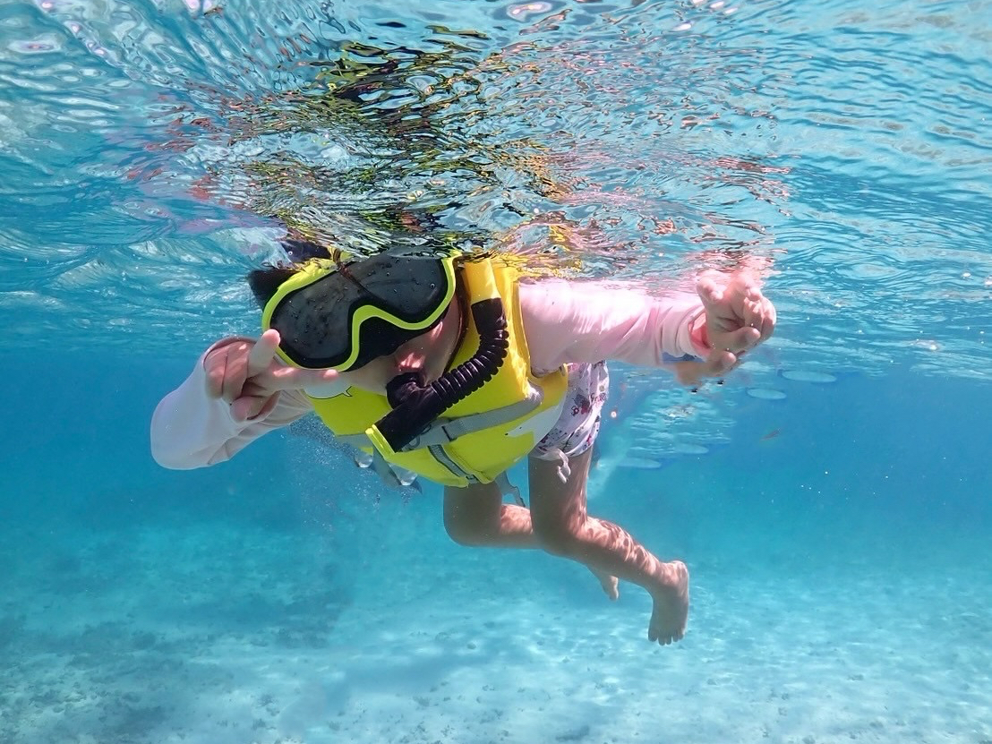 道具にこだわり、SNS映えできるシュノーケリングマスクを使用しています