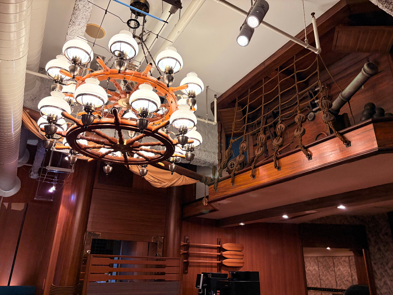 16世紀の帆船を基調としたインテリア。