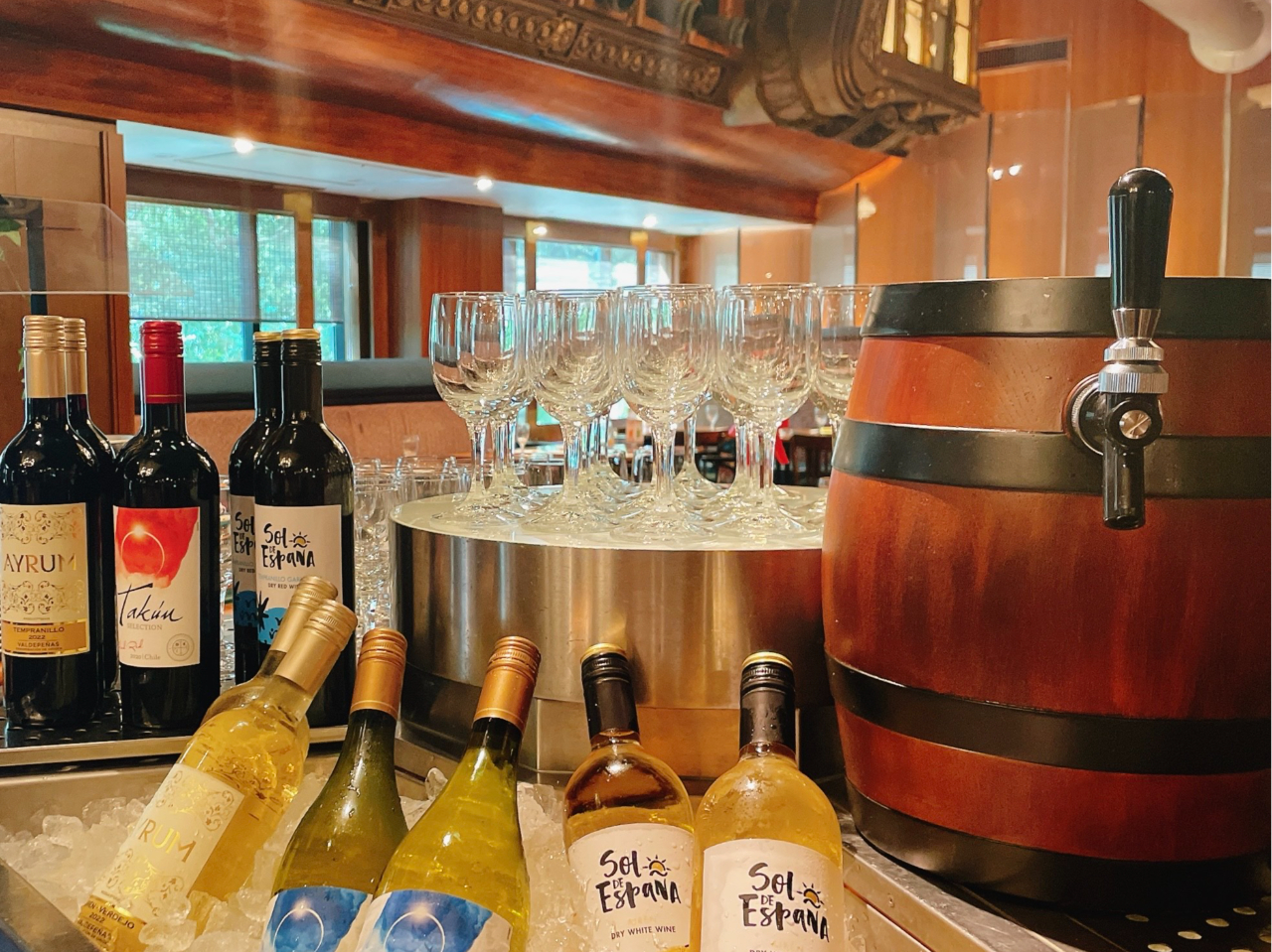 実際に使用されていたアンティークの船具を用いた内装は、非日常的な空間を演出しています。バイキング・ビュッフェ・ホテルレストラン