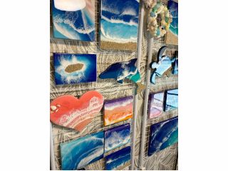 レジン波アート体験 初めての方も安心!スタッフが丁寧に説明します P3木製パネル・フィン・イルカほかファミリー・カップル・女性・友人同士にもおすすめ〜