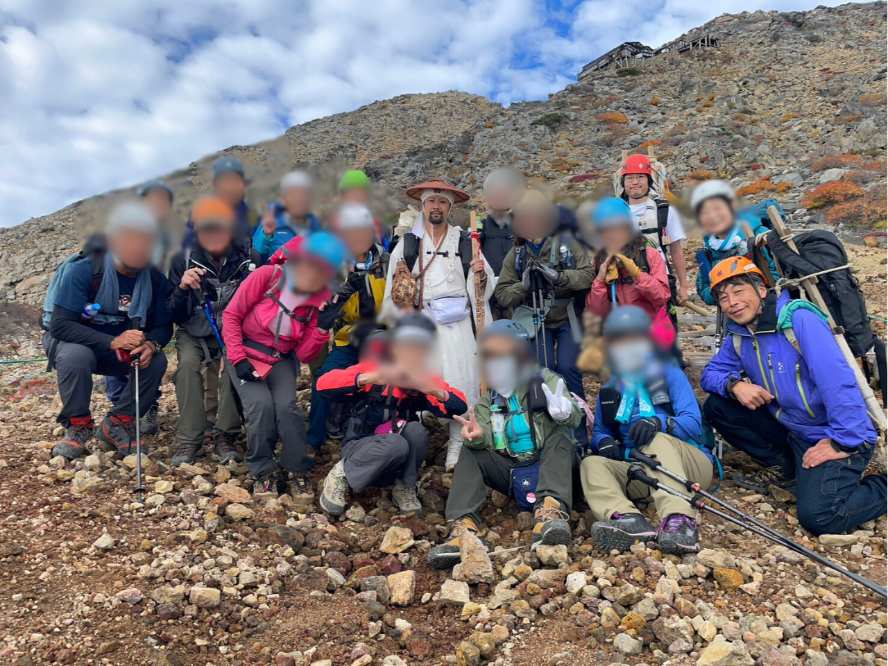 御嶽山 ツアーの様子 お客様が安全に下山できるようにサポートを務めさせていただいています。