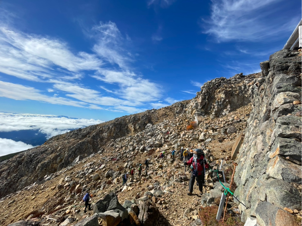 御嶽山ツアーの様子。強力2人が同行いたしました。1日目は午後にスタートして8合に宿泊。2日目に剣ヶ峰と三ノ池に行き二ノ池山荘に宿泊3日目に下山のプランでした。