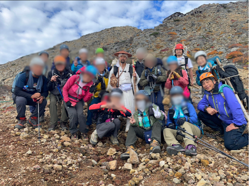 御嶽山登山ツアーの様子。この日は60歳以上の方が10名、50代の方も合わせて14名がご参加くださいました。シーズンは主に7月から10月上旬までとなっています。