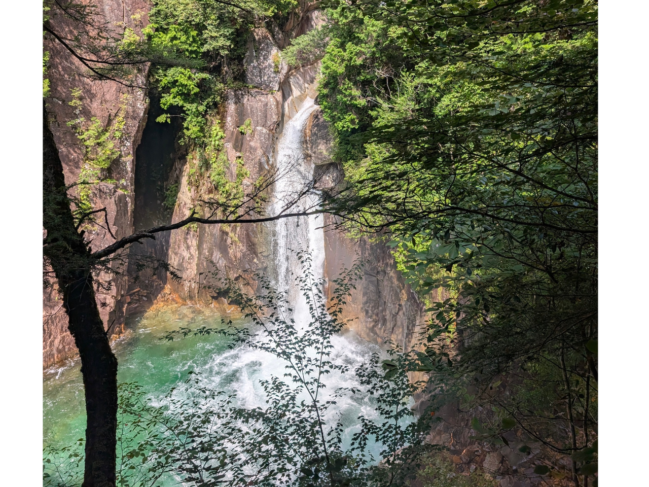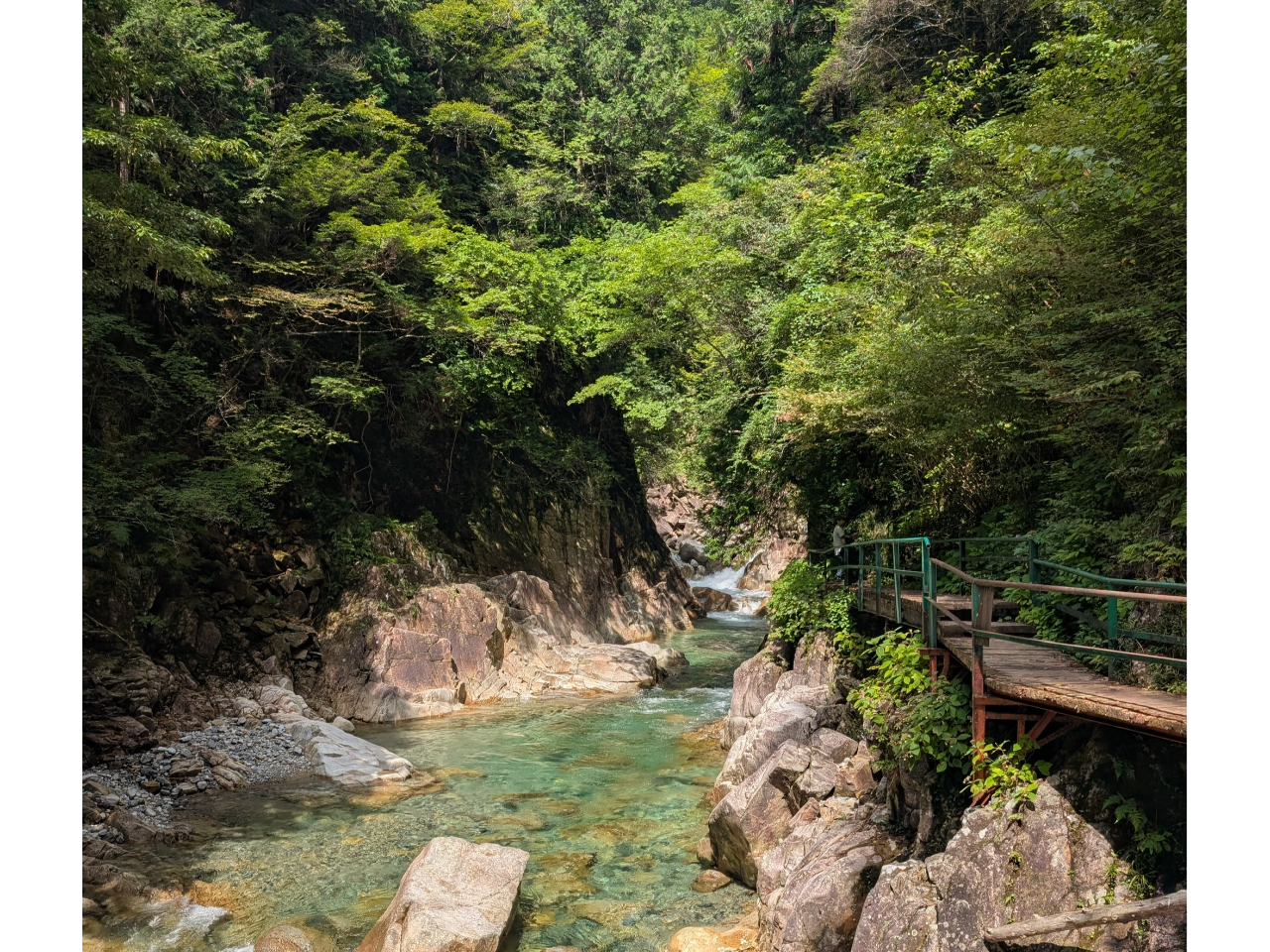 紅葉の時期は川のグリーンと花崗岩とが織りなす淵/瀬/滝が見事です。